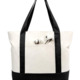Canvas Blend Bag: 18.5''x15''x4.7'' zippered main compartment and interior zipper pocket to fold bag into when not in use.Crafted from a durable 65% cotton + 35% polyester canvas blend, the breathability of cotton is enhanced by polyester's superior strength, abrasion resistance, and anti-wrinkle properties. Features 11-inch straps allowing comfortable use as a handbag or shoulder bag. Cross-stitched handles and reinforced flat bottom support up to 50 lbs.